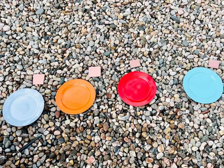 I spray painted the plates in fun colors like Teal, Orange, and Red.