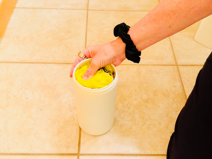 - Repurpose containers: Turn an empty Clorox wipes container into storage for plastic grocery bags or garbage bags.